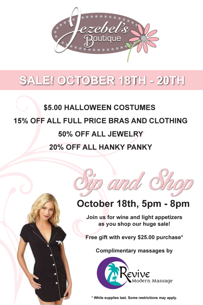 Halloween is here, sorority sisters! Stop by Jezebel’s Thurs. 10/18 from 1-8pm w/ your letters to get 15% off & refreshments!