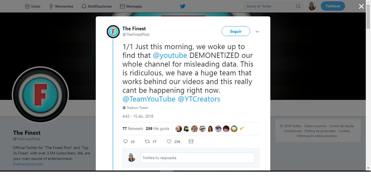 A mí me lo desmonetizaron por contenido sin un público específico, la desmonetización más injusta, ya que la mayoría de mis vídeos se hacen virales y el 60% de mis suscriptores son activos, vaya mierda