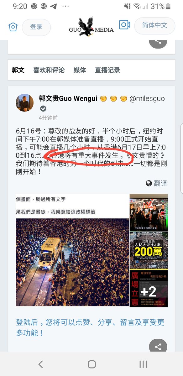 XX将有重大事件发生 这句话说了千百遍了 忽然想起几件事儿 王健的棺材撬开没? 啥时候验尸? 韦石什么时候进监狱? 防火墙推到什么程度了? “6月9号看文贵的” 文贵为香港干什么事儿了? 坦克呢?化学武器呢? 有锅战友“横车街头”吗? 港币贬了吗? 阿里巴巴跌了吗? 就算胡同赶猪两头堵 也要蒙对一回呀https://twitter.com/7k_QYS/status/1140401731034992640 …