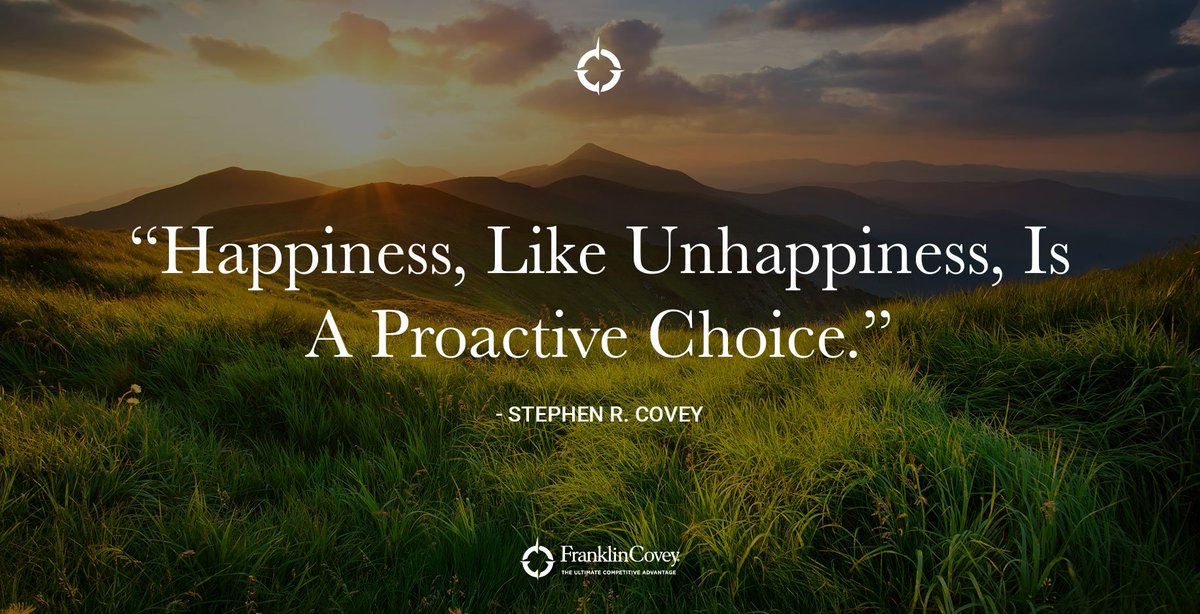 Happiness, like unhappiness, is a proactive choice." - Stephen R. Covey