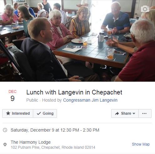 My next #LunchWithLangevin is scheduled for December 9th at The Harmony Lodge in Chepachet. Join me from 12:30 to 2:30 p.m. to share your thoughts and concerns. I always appreciate my constituents’ feedback! https://www.facebook.com/events/499047990479720/ …pic.twitter.com/UcLkiiTLtt