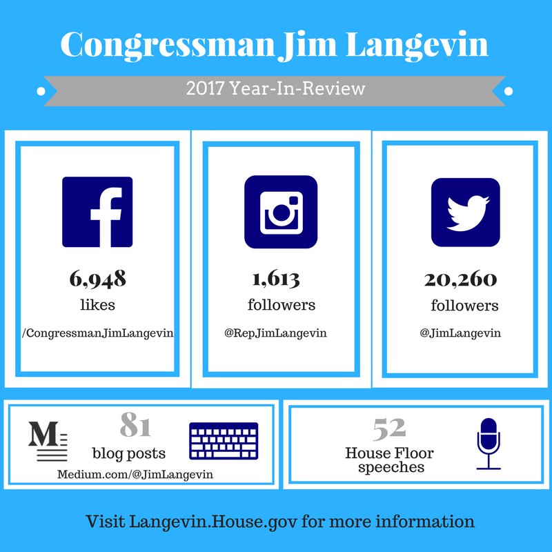 As we enter the #NewYear, I’m looking back on my office’s work in 2017. I value communicating with — and on behalf of — my constituents. Social media, my #LangevinHitsTheRhode blog, and @HouseFloor speeches play a big role in that effort. #2017YearinReviewpic.twitter.com/7KueK9SIGi
