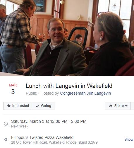 Less than two weeks away from my next #LunchwithLangevin @twistedpizzaRI in Wakefield! Join me from 12:30 to 2:30pm in an informal, one-on-one setting to share your concerns and feedback.pic.twitter.com/4CcO2brIqC