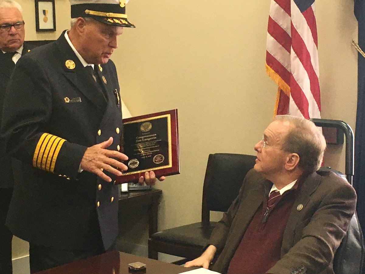 I was honored to receive an award from the Rhode Island Association of Fire Chiefs for my work in #firesafety. I’ve fought to increase #firesprinkler installation since The Station nightclub fire, and Congress recently passed a tax incentive that will lower the cost to do so.pic.twitter.com/fQNsHTCj3D