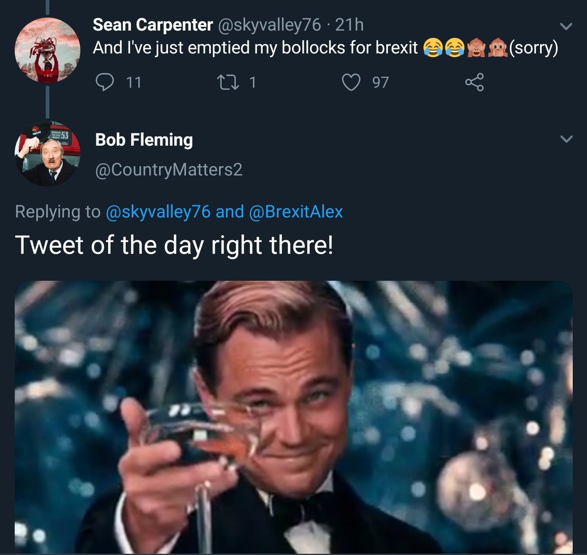 Case in point: This is one posh man congratulating another posh man for calling for Brexit to be much more damaging to ordinary people than it already is. Yet ordinary people are retweeting it. Strange times.https://twitter.com/Jacob_Rees_Mogg/status/1019601504481763329 …