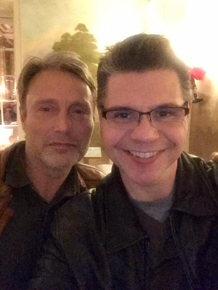 Jim not only met Mads...he gave Mads a copy of Casino Royale novel! #LongTimeFan
