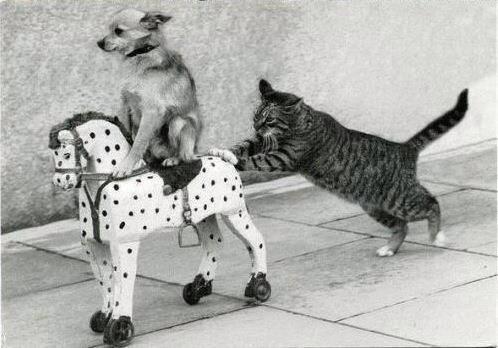 It's a cat pushing a dog on a toy horse. Thanks, Internetpic.twitter.com/z6IPJPqpoX
