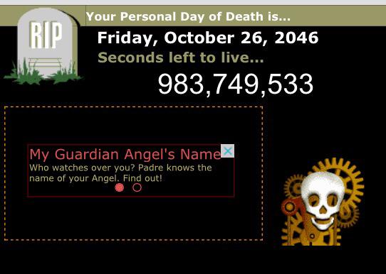 @JimVejvoda I've got 11th June 2088. I'll die on my 100th birthdayThanks. Twitter will use this to make your timeline better. UndoUndo
