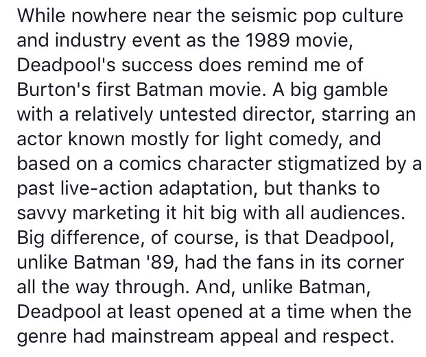 Deadpool's success reminds me somewhat of Batman '89's. See the attached for why.pic.twitter.com/k07aS4JPXc