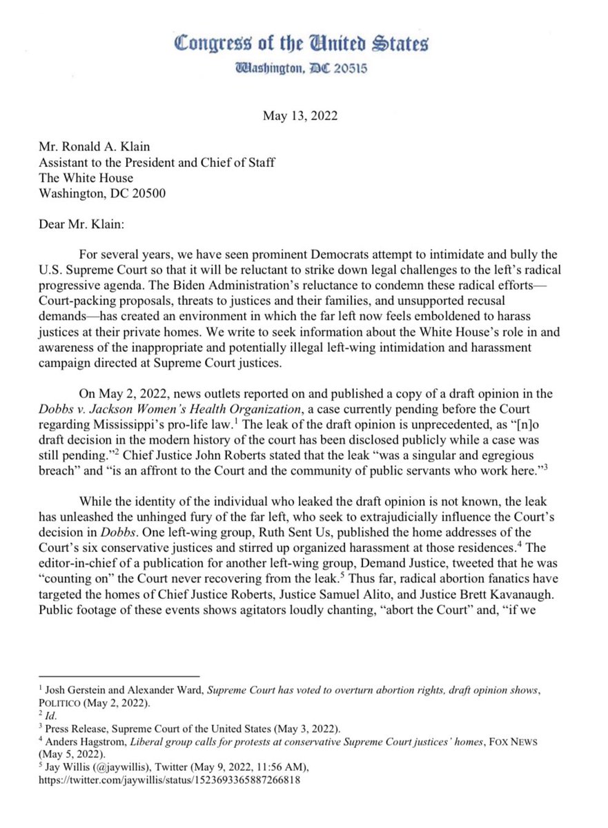 #NEWS:@Jim_Jordan and@RepJamesComer ask White House for answers on Supreme Court protestspic.twitter.com/LpMWxnWtL8