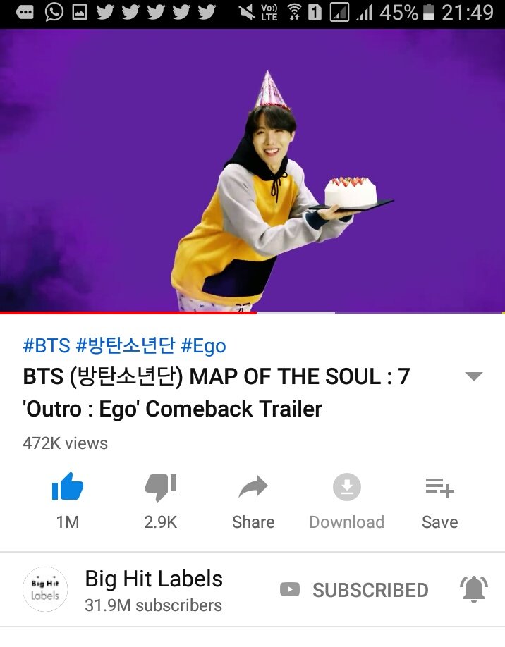 J-HOPE’S BIRTHDAY GIVEAWAY ! Rules: -Must be following -notifications on (show proof) -Tag mutuals -Stream OUTRO: Ego comeback trailer on any / all platforms (show proof) -Tag