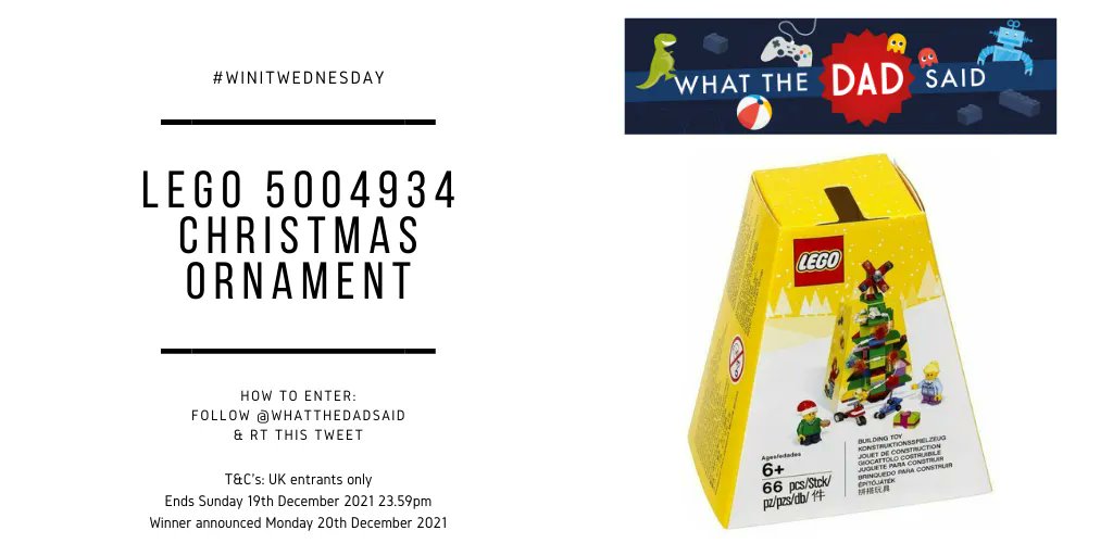 #WinItWednesday! * Follow@whatthedadsaid and RT to win a Lego 5004934 Christmas Ornament https://amzn.to/39N27S2 [AFF] * Ends Sun 19th December 2021 23.59pm * UK only Full T&C's: https://bit.ly/32WL76J pic.twitter.com/2I36lmii5m