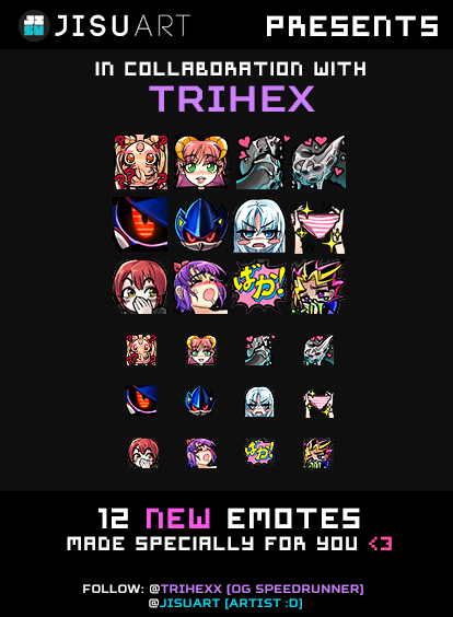 New emotes for the @trihexx ♥, made by yours truly~♥♥♥ Give him a follow for having the best emotes and speedruns.pic.twitter.com/FMUhhit1zW