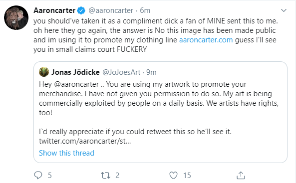 And to make this clear: I would have been happy to handle this issue differently, had he reached out privately after my tweet. But the way he responded is making a mockery of the artist community and I can’t sit with that. I‘ve had enough of people treating artists that way.