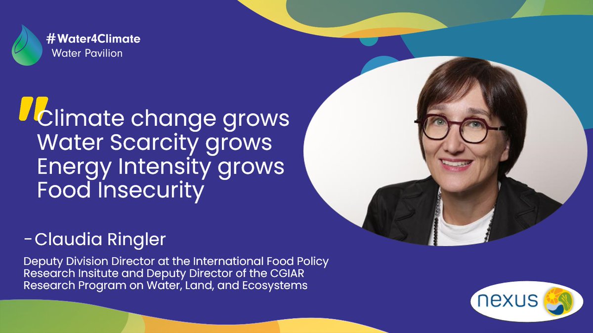 : Don't miss @IFPRI's@ClaudiaRingler speaking at the@NEXUSPlatform#COP26 session! More details here: http://bit.ly/3vRG7jq#Water4climate#WEFNexus#WaterEnergyNexus@COP26pic.twitter.com/B9liLt4QaL