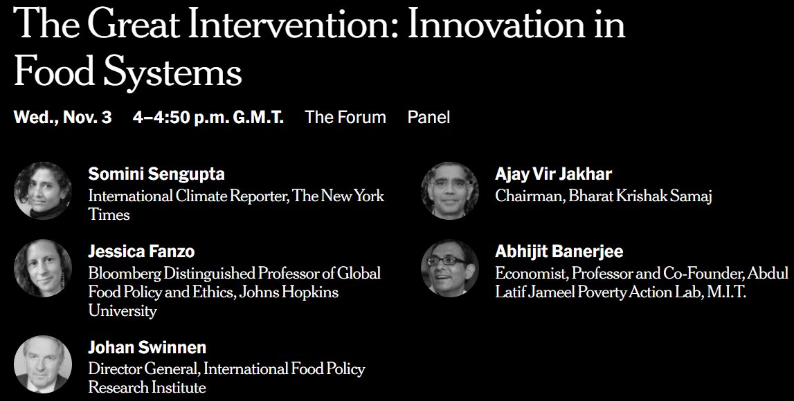 @SominiSengupta@Ajayvirjakhar@jessfanzo and Abhijit Banerjee at the@nytimes#ClimateHub to discuss strategies for equitable & inclusive#foodsystems transformation. I look forward to an engaging conversation.#COP26 Register here: http://ow.ly/IKU450GEzHe pic.twitter.com/SZ2adHAo7w