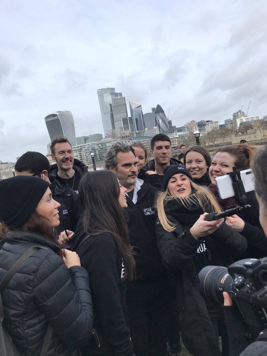 Joaquin joined animal rights activist in London before heading to the @BAFTA ceremony. Btw, BAFTA went vegan thanks to him