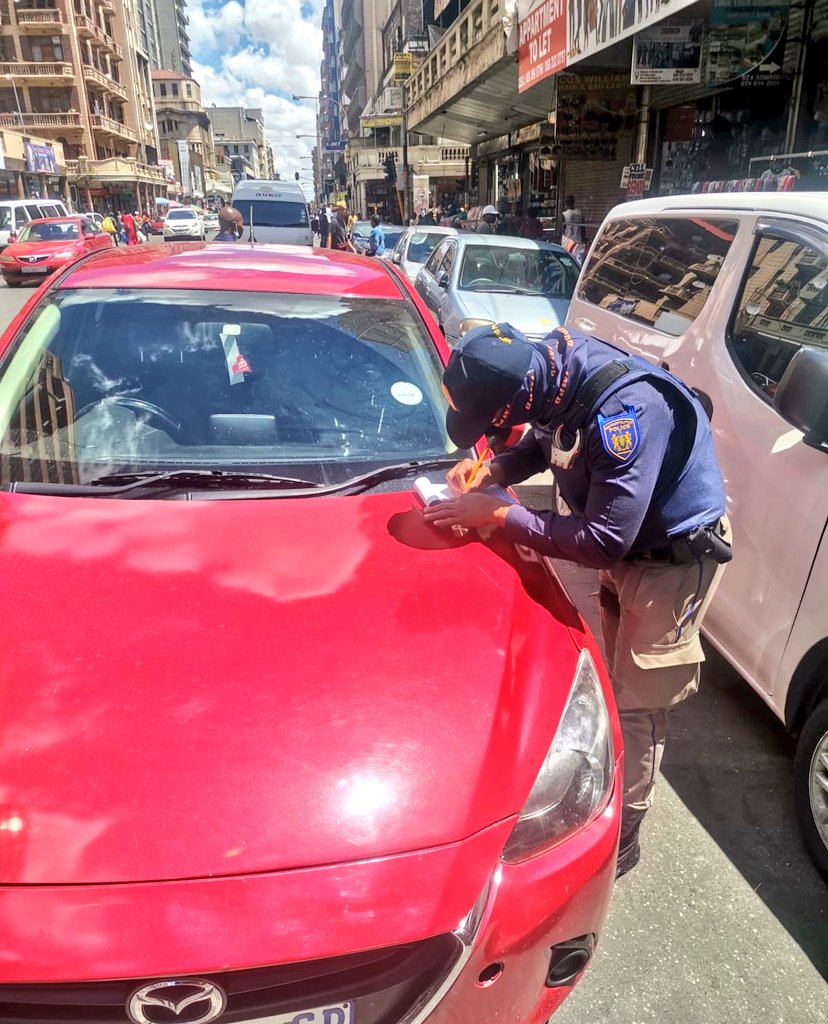 #RegionF1 Commander Deputy Director Jaca issuing parking citations at Henry Nxumalo Street under the M1 bridge, next to Maryfitz Gerald Square. Compliance is not negotiable!!!#JoburgRoadSafety#SaferJoburg#JoburgWorkspic.twitter.com/yRbbQYxSka