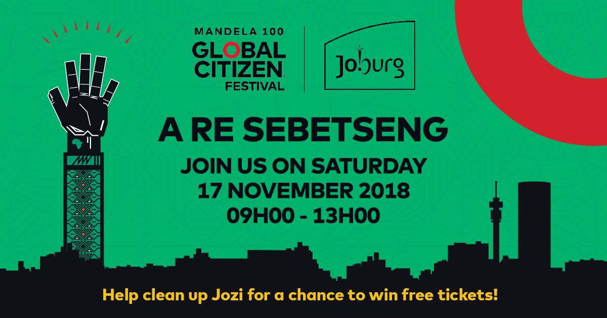 Join us this Saturday, 17 November for our #Aresebetseng clean-up campaign and stand a chance to win double#GlobalCitizenFestivalSA tickets to see#Beyonce on 2 December at FNB Stadium ^GZpic.twitter.com/yxhsPL9CPz