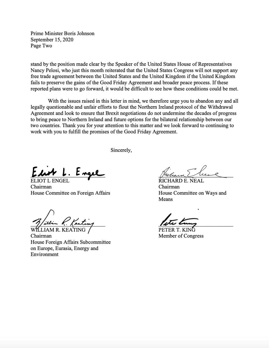 free trade agreement if Britain fails to uphold commitments with Northern Ireland.