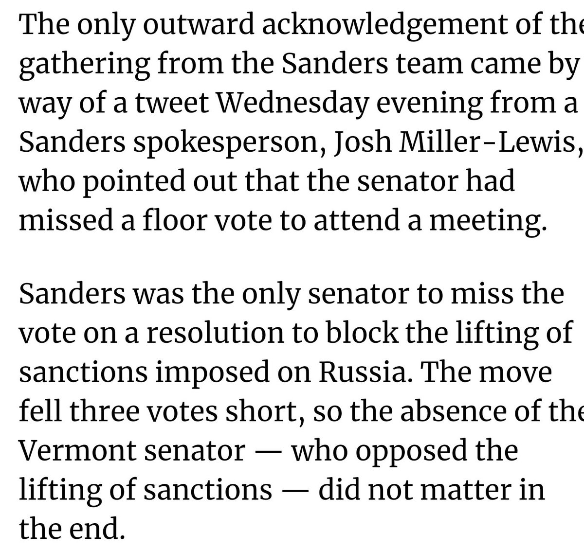 And skipped the most recent vote to meet with the sexual harassment victims from his 2016 campaign. That way he could blame women for forcing him to miss that vote.https://vtdigger.org/2019/01/17/sanders-aides-tight-lipped-meeting-regarding-sexual-harassment/ …