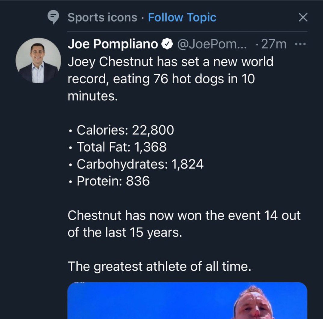 I’m glad Twitter is recognizing Joey Chestnut as the Sports Icon that he is
