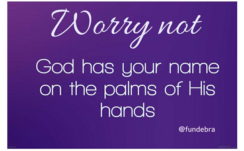 Amen, worry today will make u afraid to look at tomorrow. In fact, tomorrow has its own story. God gives gifts to enjoy, this is the most basic n makes u happy. It does not depend on what u have, but to what extent ur loyalty n obedience to Him, then He is always there 4u..