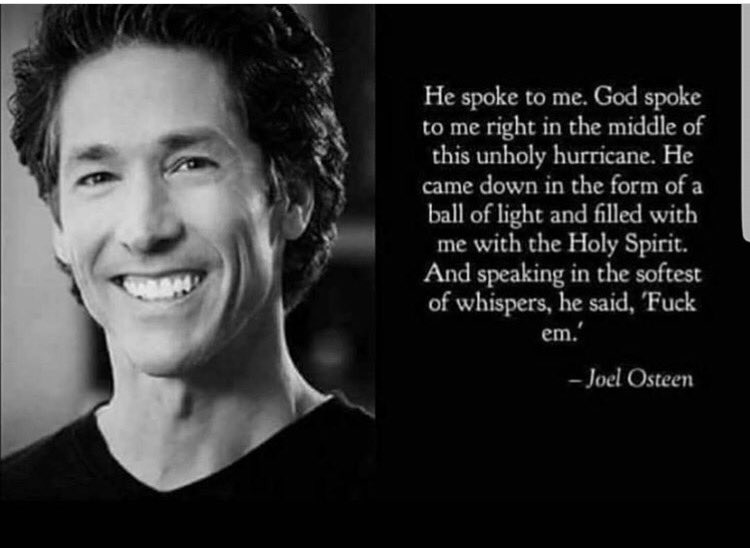 Joel Osteen, the televangelist, is a worm. Wait, worms are noble creatures. He's a roach. Wait, roaches got on the Ark.
