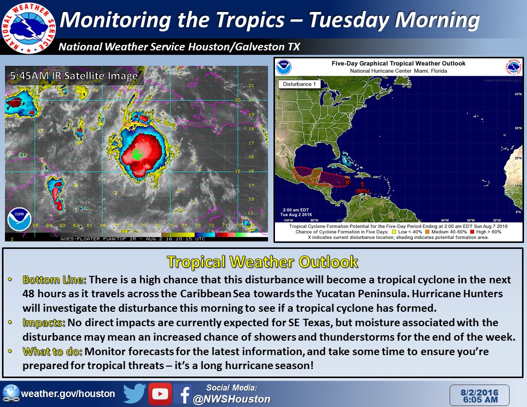 Tropical ️Storm developing in Caribbeanhttps://twitter.com/NWSHouston/status/760437442759438338 …