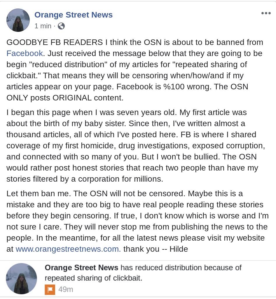 FACEBOOK HAS INFORMED THE PUBLISHER THAT THE OSN IS BEING CENSORED FROM FACEBOOK FOR BEING "CLICKBAIT" -- HERE IS A STATEMENT FROM PUBLISHERpic.twitter.com/vZkR4I6XWJ
