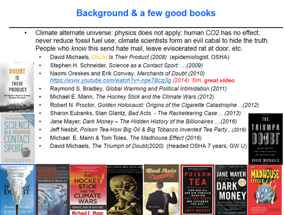 TD17/ “Machineries of Doubt – Climate, Cigarettes & Confusion” This talk has evolved over last decade. I’ve now updated the slide of good books to add