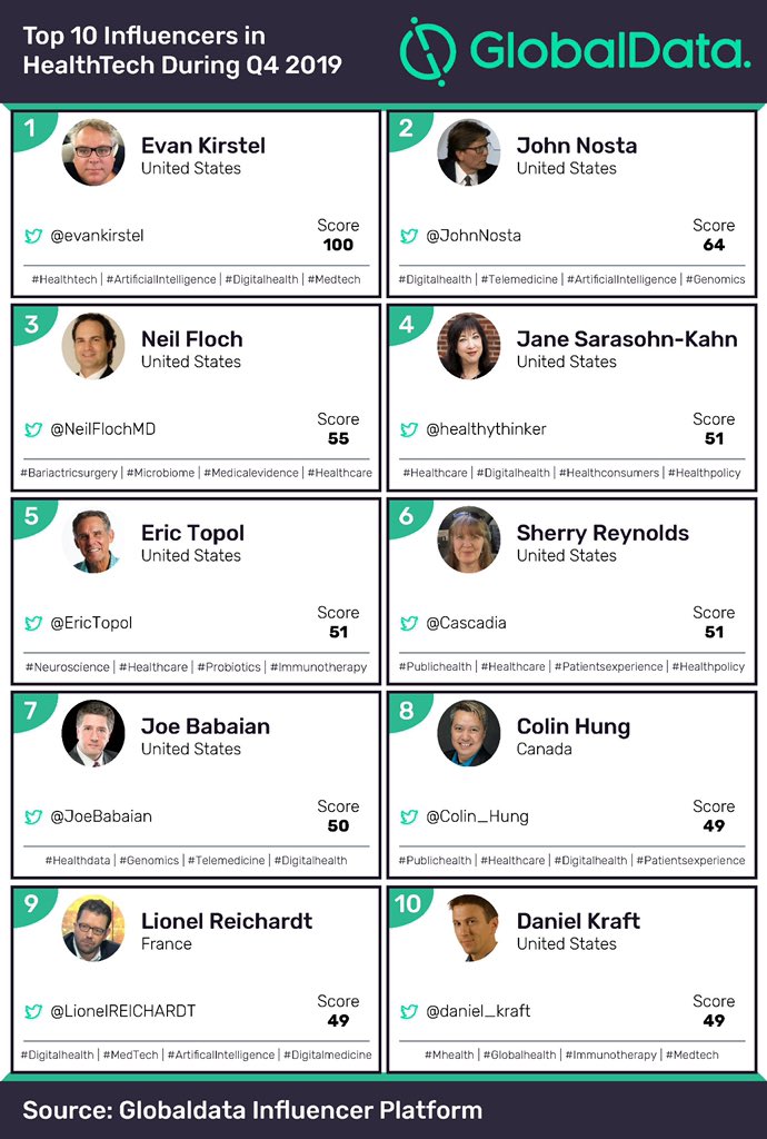 GlobalData reveals top 10 HealthTech influencers in Q4 2019 - GlobalData - what an honor. Congratulations to all.https://www.globaldata.com/globaldata-reveals-top-10-healthtech-influencers-in-q4-2019/ …