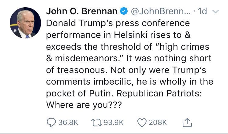 This is coming from the guy who voted for the Communist Party USA candidate in 1976. Give me a breakhttps://twitter.com/johnbrennan/status/1018885971104985093 …