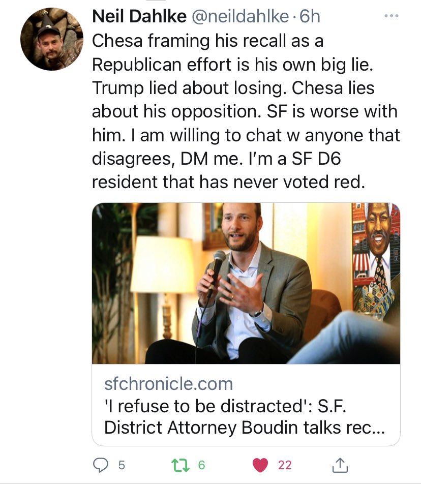 Its the national republican party attempting to usurp local judicial control to prevent progress, the money for the recall is hardly local, they're investing on the reality that our criminal justice reform is likely to grow.https://48hills.org/2021/07/the-big-gop-real-estate-and-tech-money-behind-the-boudin-recall-effort/ …