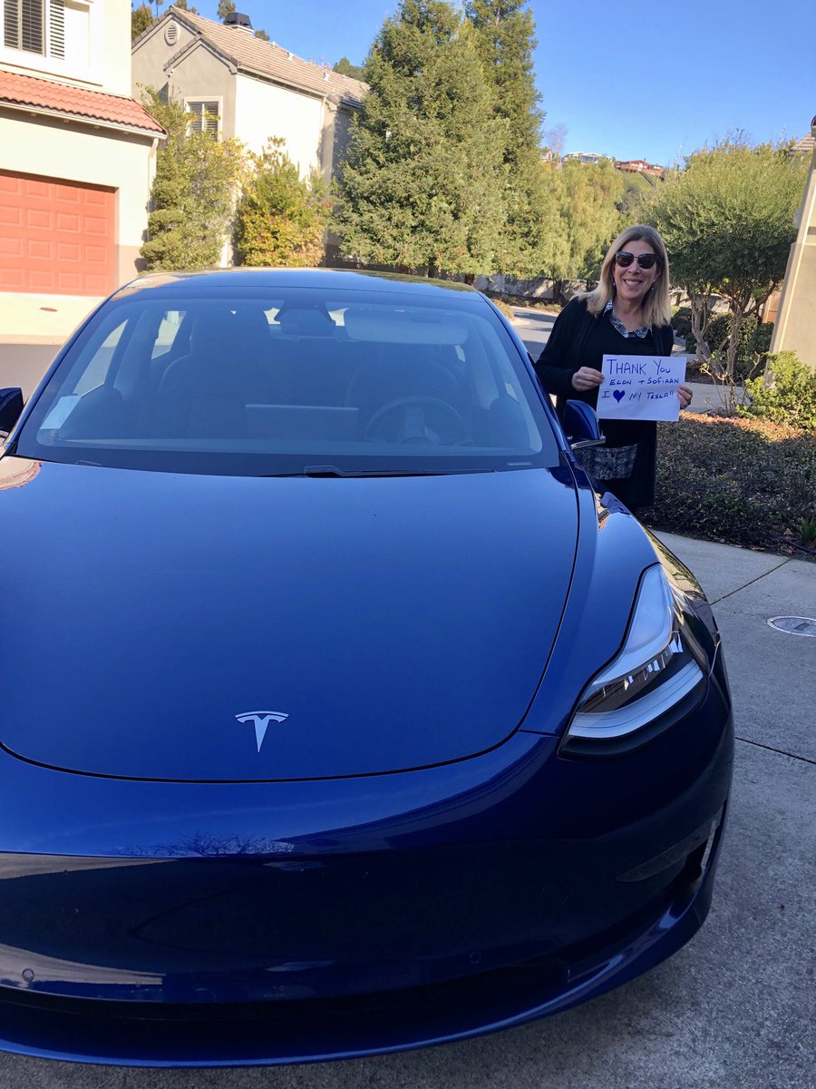#Model3 recently. I helped answer her questions while she waited for delivery. Saved many calls to@Tesla and much time. Big thanks to@elonmusk and team for making it happen. Congratulations Jill!