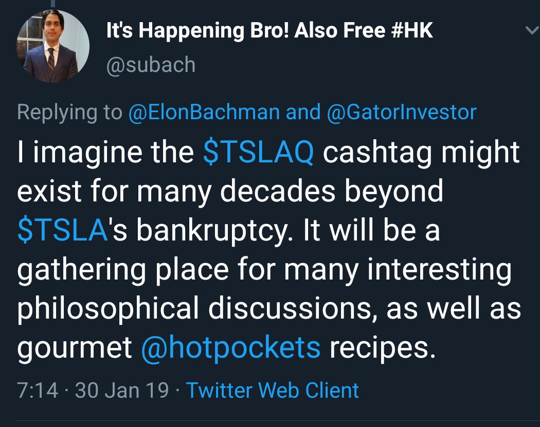 $TSLAQ. It's a profound example of open sourcing info on a complex topic.$TSLAQ way ahead of sell side analysts. https://twitter.com/BloodsportCap/status/1129949252162150400 …Tweet je nedostupan.Hvala. Twitter će to iskoristiti za poboljšanje vaše vremenske crte. PoništiPoništi -