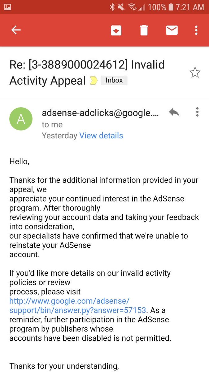 Hey @TeamYouTube. I submitted an appeal and a few mins later I get this email. I know it's not a human who read my appeal and it's a bot. Please fix this?!pic.twitter.com/OIyVp01dG6