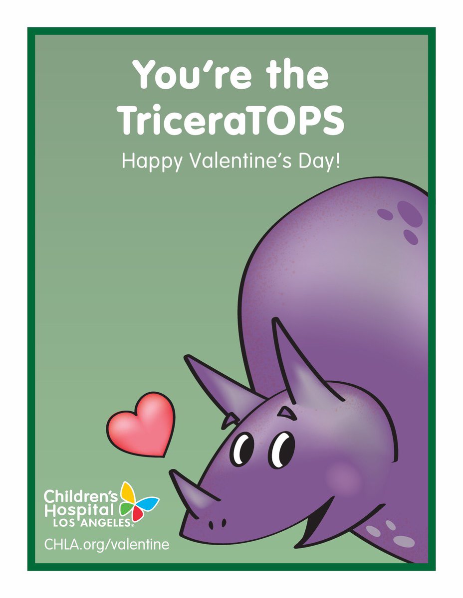 You can put a smile on a child's face, like 2-year-old Callie, pictured here with her mom, Lillian. Send a #ValentinesDay card to a kid at#childrensla! Choose a special dinosaur-themed greeting card, and then add a personalized message. Details: https://abc7.com/1197164 pic.twitter.com/tWJC2pt9Dz