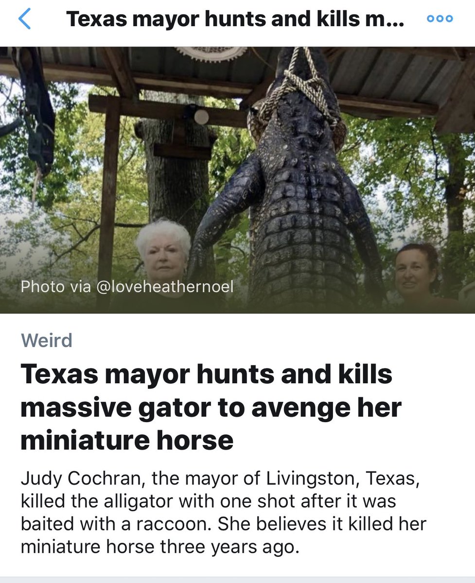 Your yankee roots are showing, Jon. Texas has had gators since creation. Good thoughts otherwise. Although I’d like Margo Martindale to play her honor, the mayor.pic.twitter.com/l8dUKm8jAe