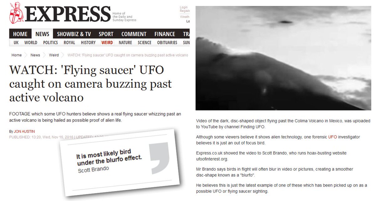 #UFO flying near#Colima volcano#Mexico. Seriously? My possible explanation shared on@Daily_Expresshttp://www.express.co.uk/news/weird/732965/Flying-saucer-UFO-video-Colima-Volcano-Mexico … -