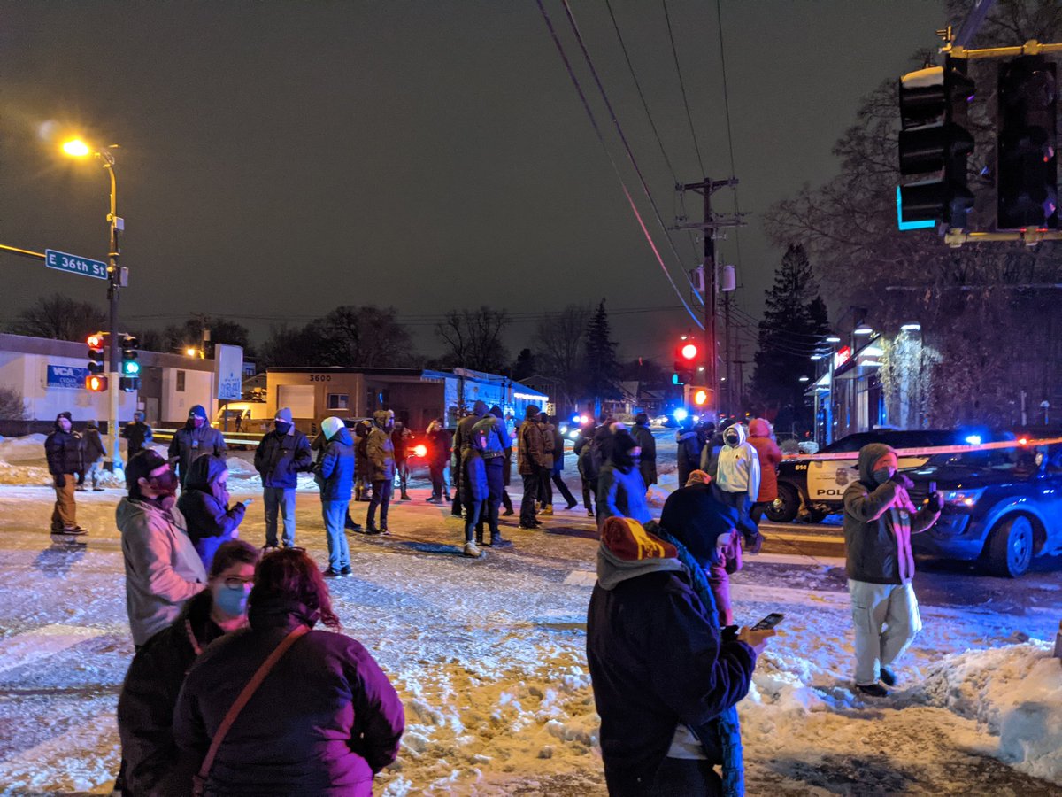 About three dozen people gathered outside police tape at Holiday station on 36th and Cedar where police shot and killed a man after a traffic stop tonight. It's very cold, 20 degrees, and people breaking out handwarmers. More people appear to be arriving.pic.twitter.com/HSd5fZtH4E