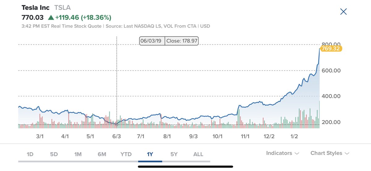 This is not normal. Just a year ago some analysts were predicting Tesla could go bankrupt if they weren’t able to raise more debt and now the stock has gone from $180 to $770 in 8 months. How is this possible?pic.twitter.com/SkNNttvvZ4