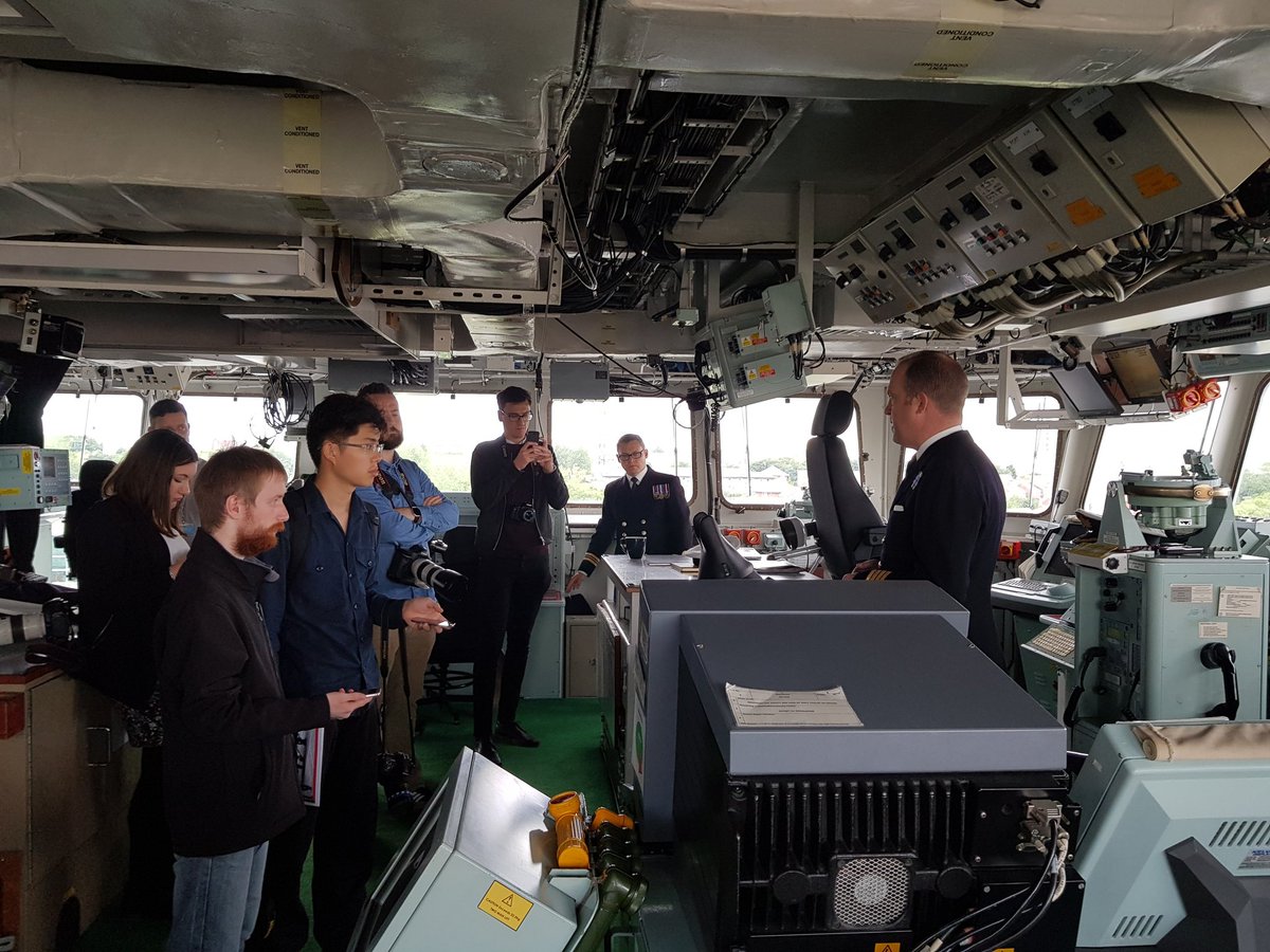 HMS Ocean Commanding Officer Captain Robert Pedre hosts media on the bridge on the ship's final visit to her affiliated city of Sunderlandpic.twitter.com/kMUvGWYVzQ