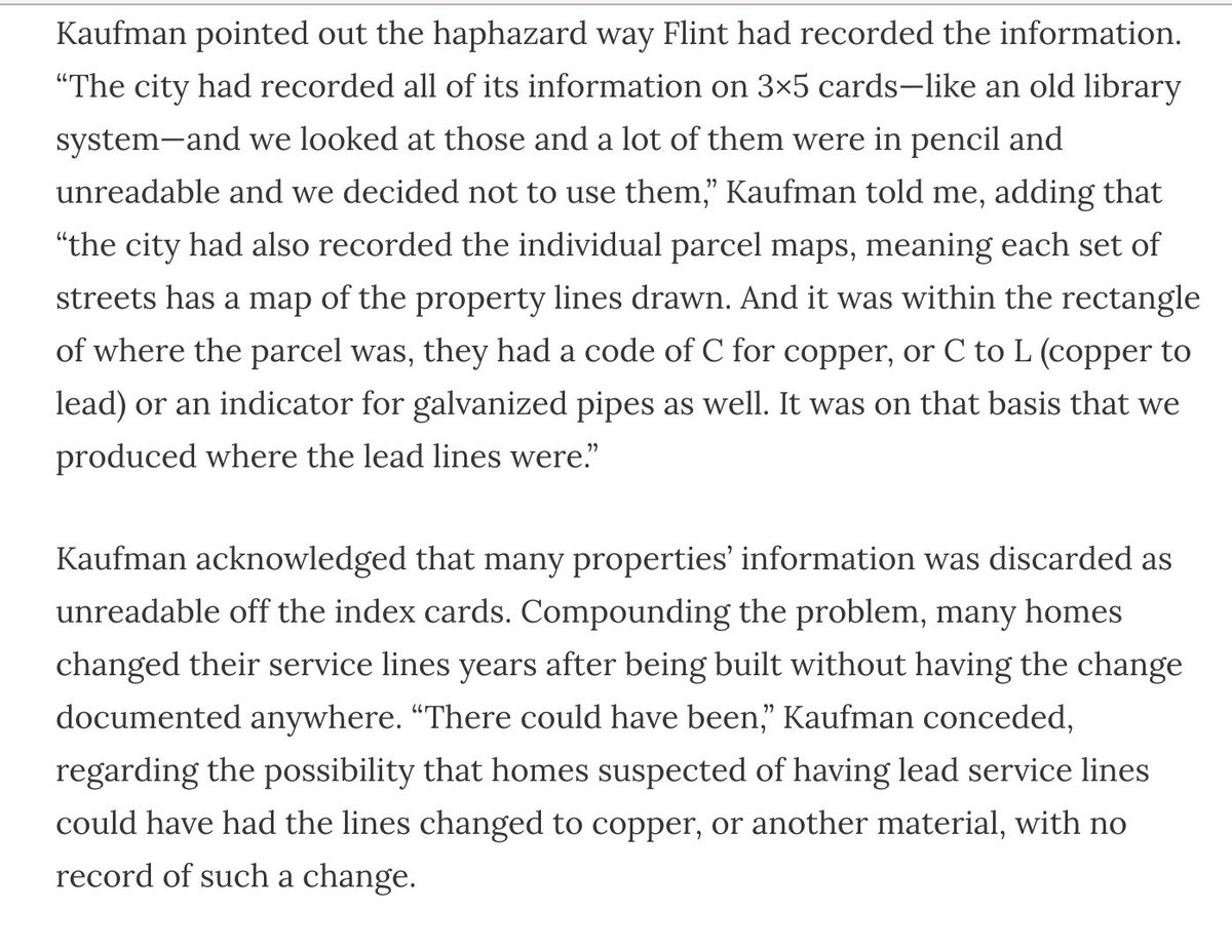 IMPORTANT: 2 declare Flint's water "restored," EPA-funded testing/Michigan State testing relied on a University of Michigan-Flint mapping study on where lead service lines were in Flint. That study relied on records written on INDEX CARDS from decades ago https://www.truthdig.com/articles/fraudulence-in-flint-how-flawed-science-has-declared-the-crisis-over/ …pic.twitter.com/j9SD8zsZIV