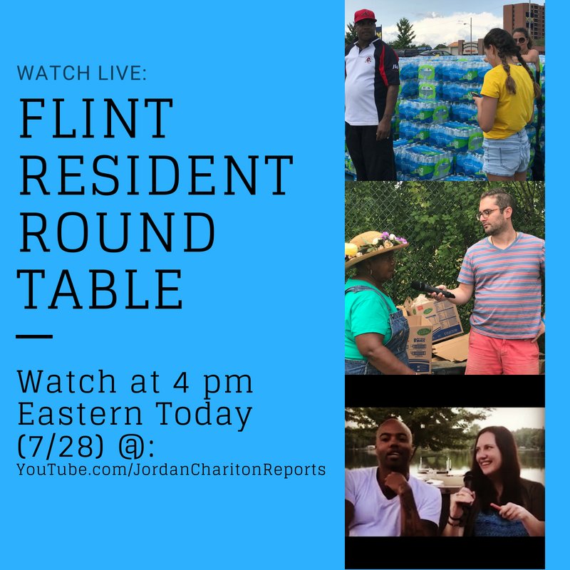 Flint Resident Round Table: TUNE IN TODAY at 4 pm EASTERN to watch LIVE at http://YouTube.com/JordanCharitonReports …! Share this invite and invite friends. Flint residents deserve to be heard. #FlintWaterCrisispic.twitter.com/Hvj9igvXe9