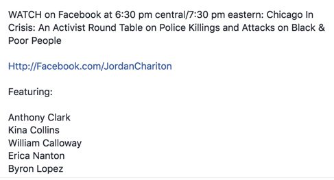 EVENT SOON: Chicago In Crisis: Round Table on Attacks on Black & Poor People - https://mailchi.mp/3c44c841f637/event-soon-chicago-in-crisis-round-table-on-attacks-on-black-poor-people …pic.twitter.com/OMGLnjV1EA
