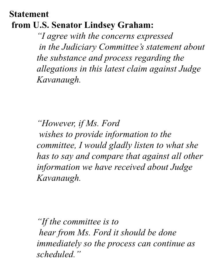 Gotta love the hypocrisy of @LindseyGrahamSC, who yearned for a politics of civility and grace at John McCain's funeral. Look at this absurd response to Christine Blasey Ford going public against Brett Kavanaughhttps://twitter.com/Phil_Mattingly/status/1041432888938586112 …