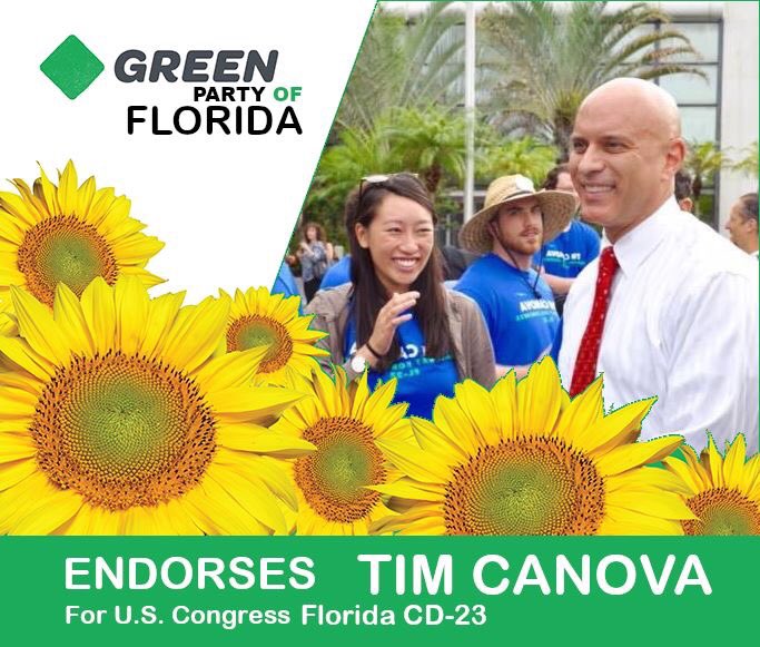 Green Party of Florida proudly endorses Tim Canova for US Congress. The Green Party of Florida urges residents of Florida’s 23rd congressional district to support the campaign of Tim Canova for US Congress." #VoteTimCanova #TuesdayMotivation pic.twitter.com/dBUeVqr2W5