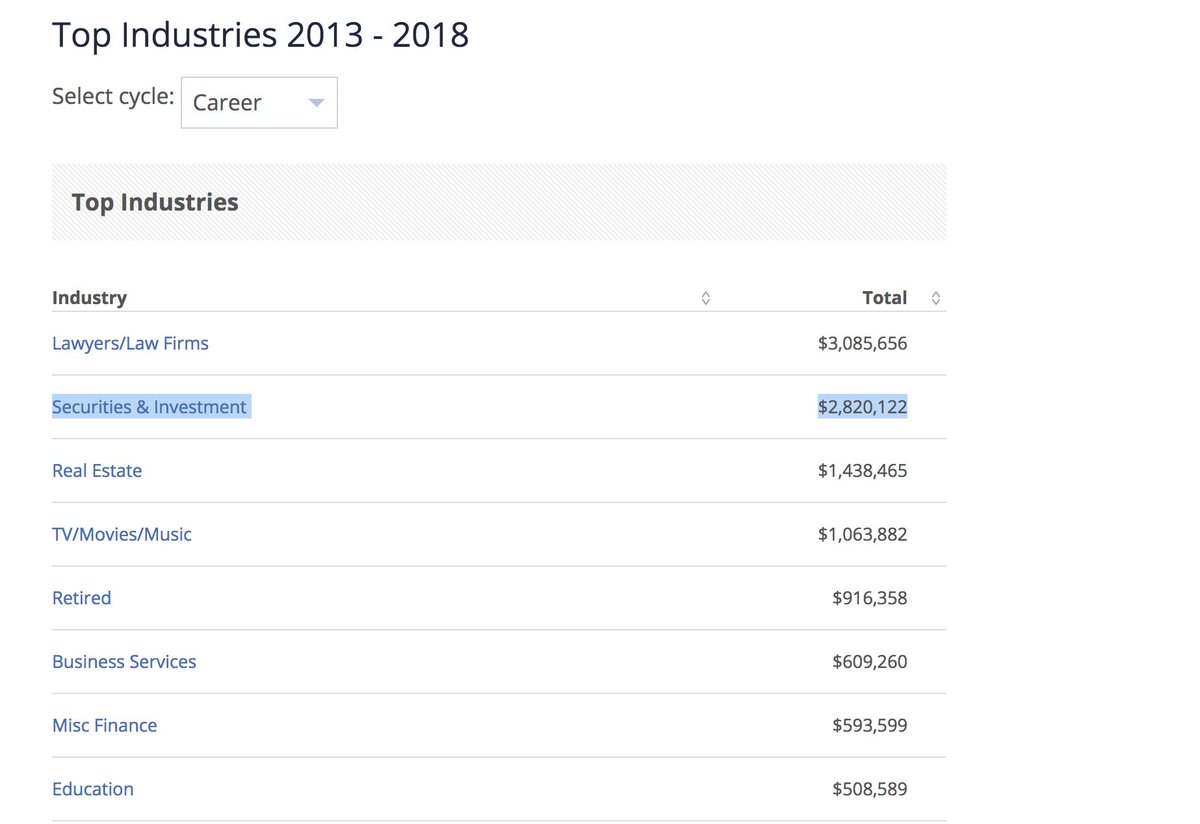 Bernie Sanders is no stranger to Wall Street.........https://www.opensecrets.org/members-of-congress/contributors?cid=N00000528&cycle=CAREER …