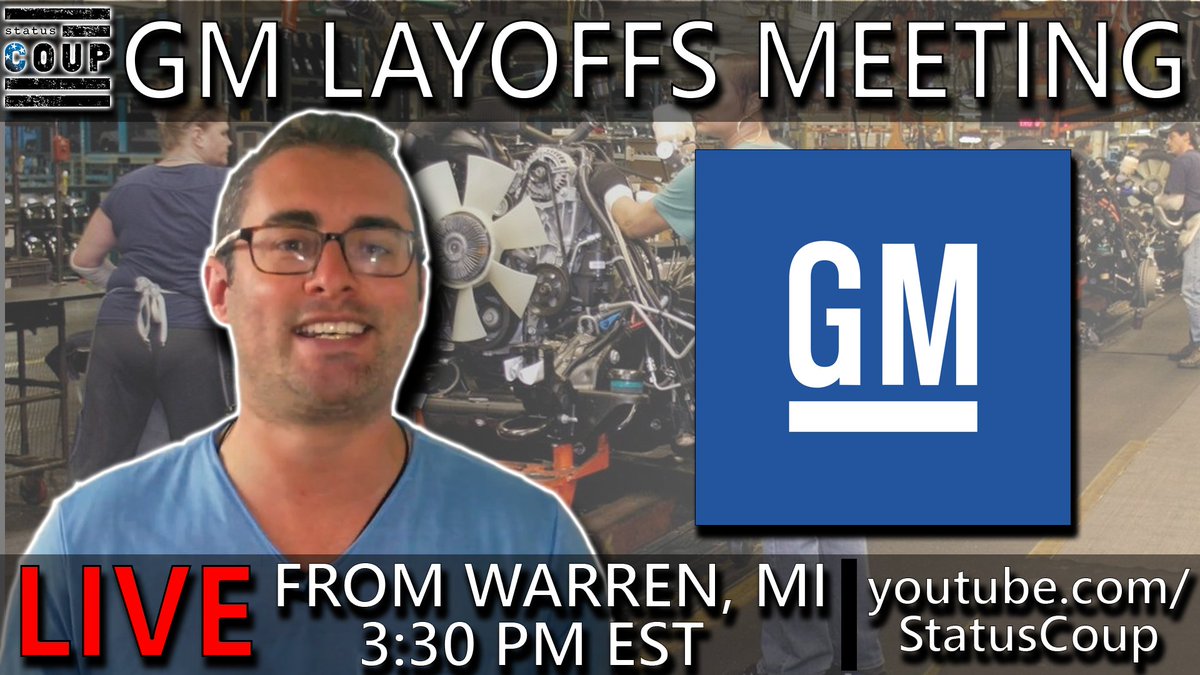 .@StatusCoup Will Be LIVE From Michigan at 3:30pm eastern from a meeting held in response to General Motors laying off nearly 15,000 workers (after making $8 billion in profit last year!) Tune in on Status Coup's YouTube!pic.twitter.com/hSqNLld4A2